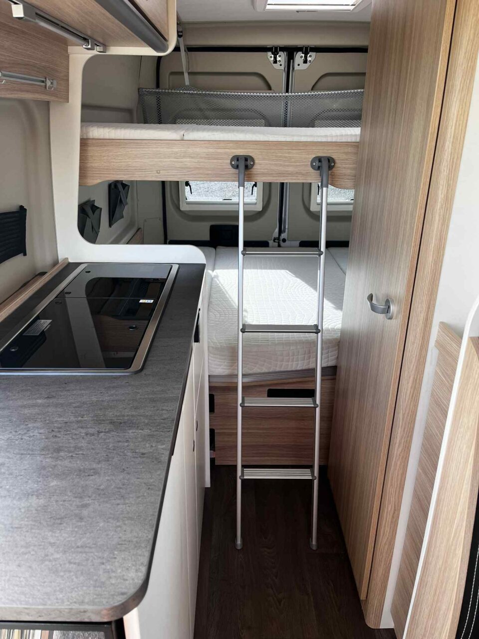 Spacious, with on board amenities including a toilet and shower for comfort and ease, the Sunlight Cliff 601 is ideal for a family friendly adventure. On request we can remove one or both top bunk beds (these are separate with safety nets for little ones) (see photo)