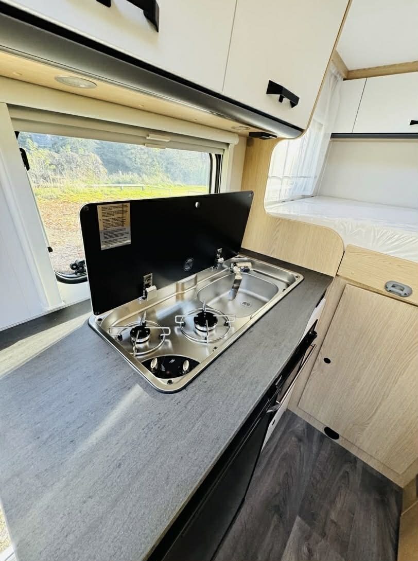 The Ben Vane is a Sunlight V60 2 Berth Motorhome that drives 4. Comes fully kitted out with everything you need for your trip. Comes with a double hob, 84L Fridge/Freezer and Oven. Toilet/Shower and Double bed in the rear.
